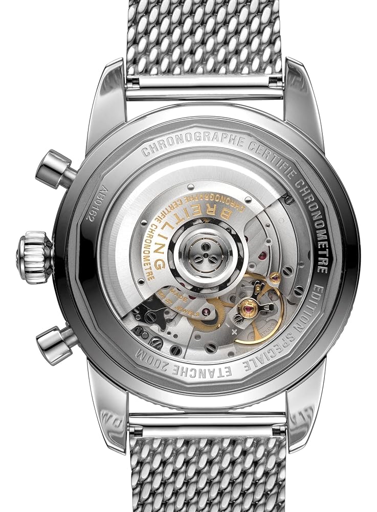 Blue dial enhanced by luminous silver-tone arrow-shaped hands. Silver-tone stainless steel case with a silver-tone mesh stainless steel (aero classic) band. Automatic movement. 200 meters / 660 feet water resistance. Uni-directional Rotating bezel. Scratch Resistant Sapphire crystal. Solid caseback. Fold Over with Safety Release clasp. Screw Locked crown. Case size 44 mm x 15.50 mm. Band 22 mm x long. Breitling AB0162121C1A1 Superocean Heritage II Watch